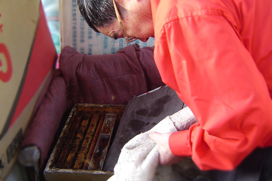 我和众多的贫困癌症患者一样,不能支付高昂的手术费,只得四处求医问药,在这生死存亡的关头,《蜜蜂杂志》介绍蜂产品和蜂疗的文章给了我求生的希望。用以毒攻毒、疏通经络、活血祛瘀、增强人体免疫机能的蜂毒疗法,来达到抑制和治愈疾病的效果。根据自己学过的中医基础,参考了《蜜蜂杂志》、《中国养蜂》及蜂毒疗法的书籍,制定了用蜂螫刺的经络穴位。另外,我一直坚持服用西藏的一个抗癌产品——舍力丹。这是西藏的一个老药方,当年我在西藏工作到时候都听说过这个药。经过一个月的综合治疗,轻飘的两条腿开始听话有力了。走路也有劲了。最令人高兴的是可以大口吞食流质。2个月后效果更为明显,我可进食半流质食物,而且上下楼也不用人搀扶了。明显的疗效更坚定了我利用蜂疗抗癌的信心。忍着大剂量蜂毒所致的疼痛、痒、肿、发高烧等不适症状,我不断地摸索,不断地学习,还增加了服用舍力丹的用量,早晚均用蜂螫刺以加大用蜂量。此外,我还改进了螫刺的方式,不仅用蜂散刺,有时还用蜂直刺。不断改变穴位和用蜂量,调整螫刺时间,配合药罐疗法,使病情迅速好转。3个月后我已可进普通食物。一个挣扎在死亡边缘的癌症患者重新获得了新生。