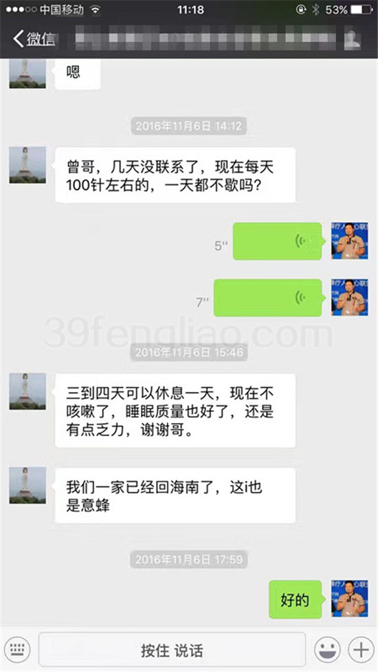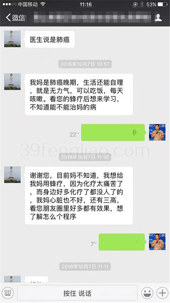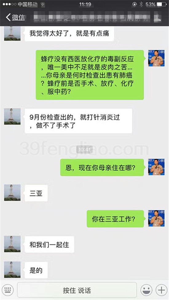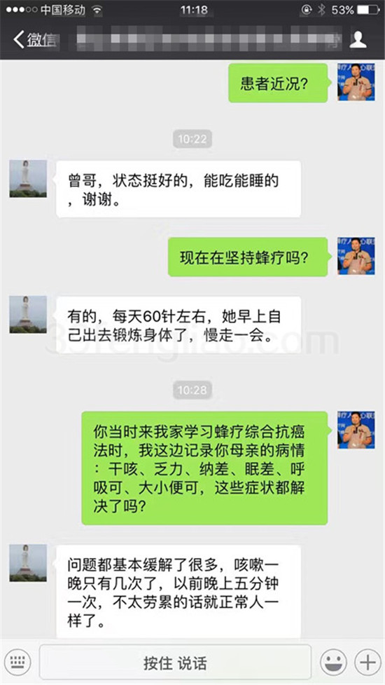 晚期肺癌患者经过三个月的蜂疗症状解除