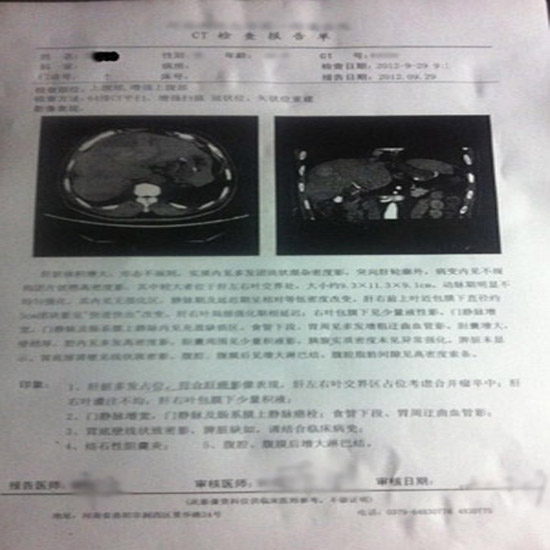 2012年9月29日,患者被河南科技大学第一附属医院确诊为肝癌。