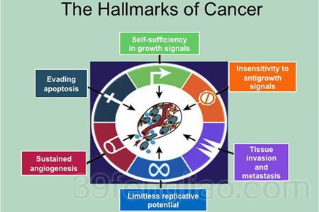 早在几十年前,科学家就已经提出,癌症是由于正常细胞长期累积的突变造成的。哈纳汉和温伯格的贡献,在于从大量研究数据和深入理论思考中,挖掘出了癌细胞在形成肿瘤的道路上必须获得的6个标志:癌细胞必须具备不断刺激自身生长的能力,并能忽略那些抑制生长的信号(这便分别是原癌基因和肿瘤抑制因子的作用);癌细胞必须学会绕过机体自身的“排障机制”,并击败“端粒”(telomers)这一存在于染色体末端、限制细胞分裂次数的计数器;它还要生成自己的血管,最终扩张进入周边组织,发生转移。