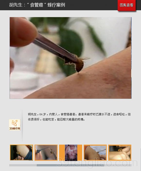 患者来蜂疗时已滴水不进,进食呕吐,但体质很好,也能吃苦,能忍耐大蜂量的疼痛。