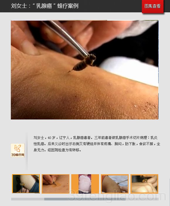 患者后经蜂疗医治两个月的时间,一个月后硬结变软,胸闷等不适症状消失,乳中有时有疼感,两个月后状况良好。患者和家属非常满意,经蜂疗医治,免除开刀之苦,也极大节省了经济费用。