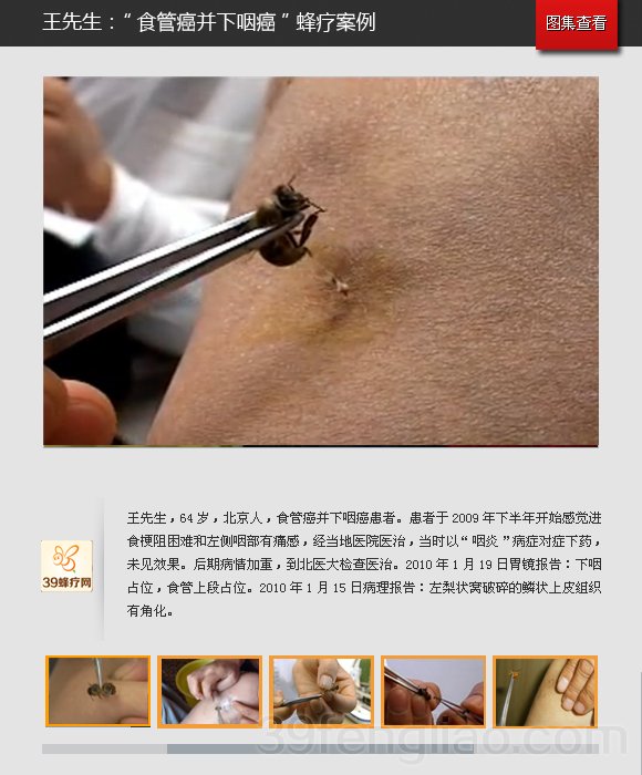 后采用综合医治法配合,但患者蛰蜂还出现过过敏症状,酥痒难忍,无法承受的痛苦,近日已停蜂疗靠药物治疗,由于农民经济有限,近日将对其采用脱敏法,药物和穴位用蜂,增强抗体。减少过敏症状,使患者早日加入蜂疗的抗癌行列中、因为他有孝顺的女儿,温暖幸福的家庭,我深信采用正确的医治方法一定会战胜癌症的,一定会改善生存质量,延长宝贵的生命。