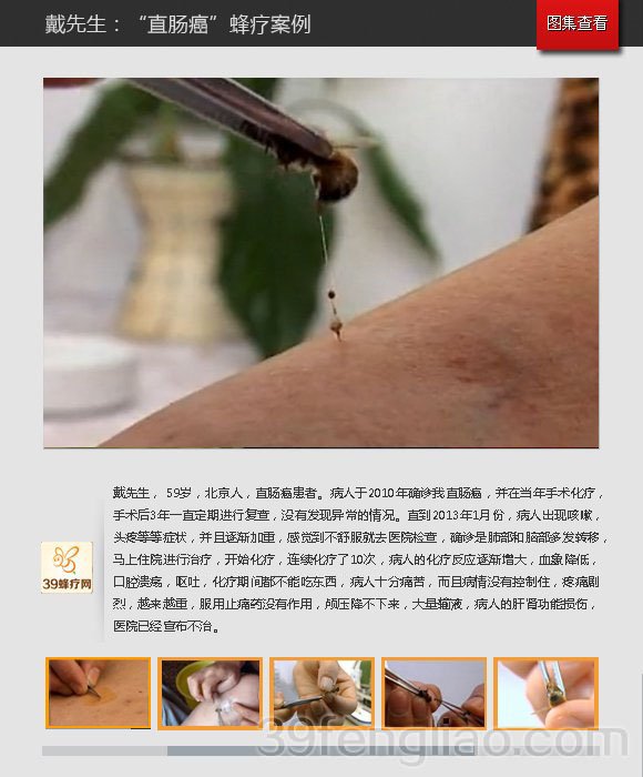这样就到了2013年4月份,听到朋友说起蜂疗方法,认为不如试试看,医院已经宣布不治,试一试总比等着强吧,就这样把蜂疗的曾伟请到北京,教授蜂疗方法,直到家人学会了,就开始进行蜂疗。