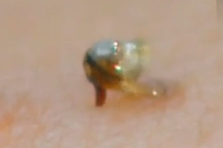 过敏试验后,翁女士没有出现过敏反应。大夫选取关元、中极、水道等多个穴位进行直刺和点刺,留针20min,每日一次,并让其服用手掌参、红景天等藏药辅助治疗。蜂疗两周后,翁女士已经从床上下地站立了。三个月后,她的腹水完全消失。