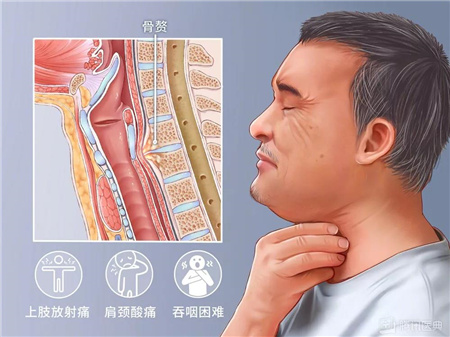 (1)最典型的症状是吞咽困难,颈肩部疼痛、僵硬及及活动受限等,疼痛向上肢放射、手指麻木和头晕等症状。