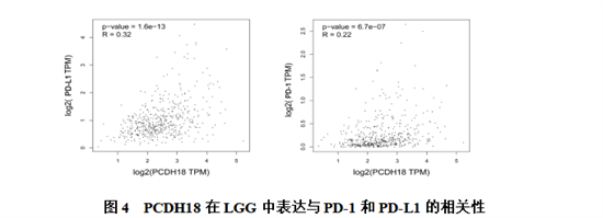 2.4 PCDH18在LGG中表达与PD-1和PD-L1的相关性
