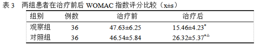 3. 两组患者在治疗前后WOMAC指数评分比较
