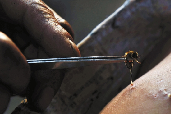 《科技日报》1999年9月8日报道德国诺海贝格卫生和环境研究中心,病毒学家巴拉克,维尔纳在研究中发现,艾滋病病毒的化学结构类似于蜂毒的化学 结构,由此萌发出以毒攻毒,利用蜂毒来医治艾滋病的设想。维尔纳教授在研究中确认,蜂毒可以通过破坏病人体内艾滋病病毒促进剂的方法,阻止病毒的扩散。