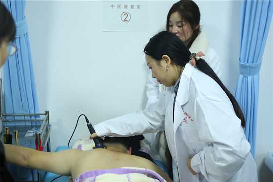 吴佳在北京39蜂疗网(南京)实战集训班实操课上操作光波导入仪
