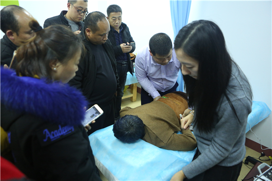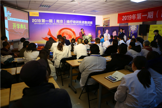 张海金在北京39蜂疗网(南京)实战集训班实操课上与老师同学交流
