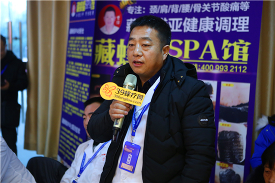 张海金在北京39蜂疗网(南京)实战集训班课堂上接受众媒体采访
