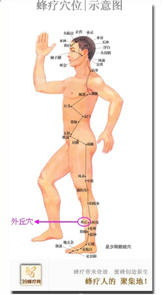 外丘穴该穴位于人体的小腿外侧,当外踝尖上7寸,腓骨前缘,平阳交穴。