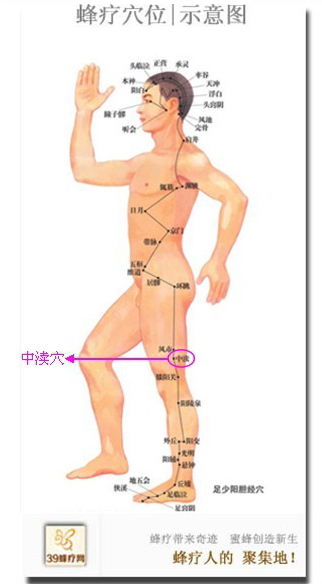 中渎穴 该穴位于人体的大腿外侧,当风市穴下2寸,或腘横纹上5寸,股外肌与股二头肌之间。