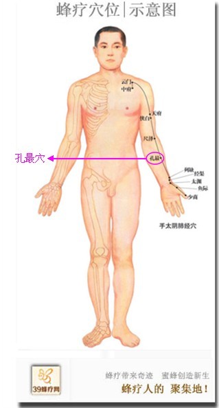孔最穴 该穴位于前臂掌面桡侧,当尺泽穴与太渊穴连线上,腕横纹上7寸处。