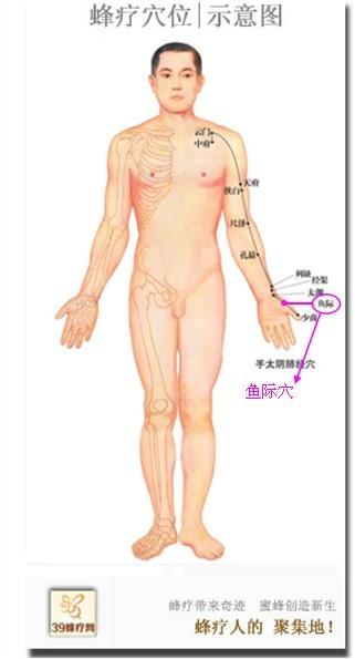 鱼际穴 该穴位于人体的手拇指本节(第1掌指关节)后凹陷处,约当第1掌骨中点桡侧,赤白肉际处。