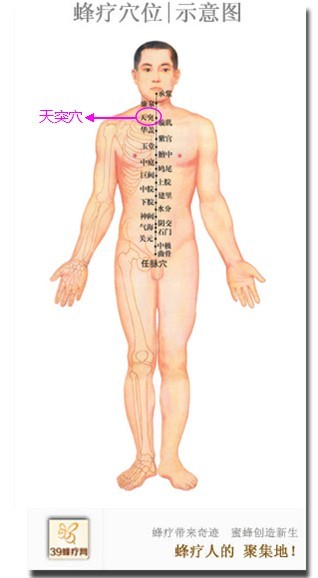天突穴位于颈部,当前正中线上胸骨上窝中央。