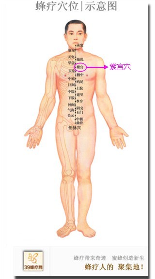 紫宫穴 该穴位于人体的胸部,当前正中线上,平第2肋间。