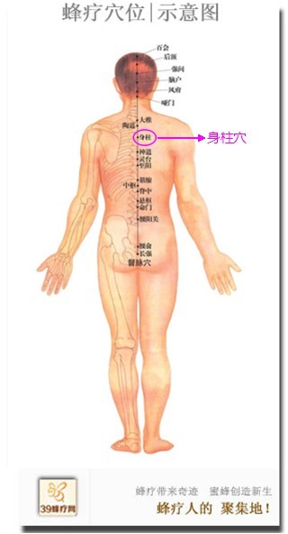 身柱穴 位于背部,当后正中线上,第3胸椎棘突下凹陷中。