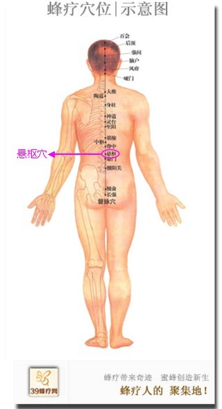 悬枢穴的主治病症为:腰脊强痛,腹胀,腹痛,完谷不化,泄泻,痢疾。