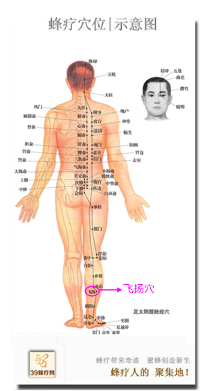 飞扬穴 位于人体的小腿后面,外踝后,昆仑穴直上七寸,承山穴外下方1寸处。