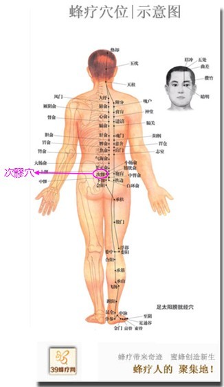 次髎穴位于人体的骶部,当髂后上棘内下方,适对第2骶后孔处。