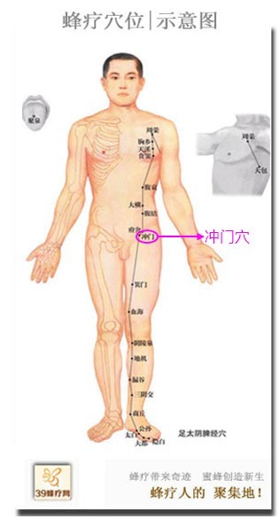 冲门穴在腹股沟外侧,距耻骨联合上缘中点3.5寸,当髂外动脉搏动处的外侧。