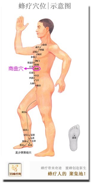 商曲穴位于人体的上腹部,当脐中上2寸,前正中线旁开0.5寸。