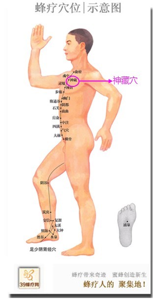 神藏穴的主治疾病为:咳嗽,气喘,胸痛,烦满,呕吐,不嗜食。
