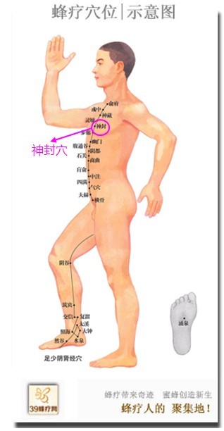 神封穴的主治疾病为:咳嗽,气喘,胸胁支满,呕吐,不嗜食,乳痈。
