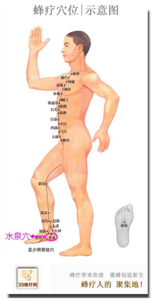 水泉。水,水液也。泉,水潭也。该穴名意指肾经水液在此聚集形成水潭。本穴物质为大钟穴传来的地部经水,在本穴聚集后如同水潭,故名。
