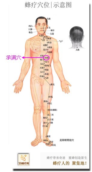 承满属足阳明胃经。主治胃痛,吐血,食欲不振,腹胀。