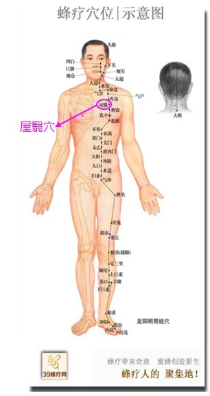 屋翳穴位于人体的胸部,当第2肋间隙,距前正中线4寸。