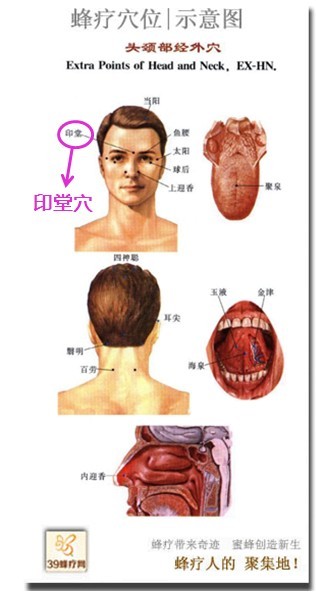 取穴时,可以采用正坐或仰靠、仰卧姿势,印堂穴位于面部,两眉头连线中点即是。