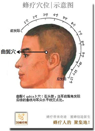 曲鬓穴的主治疾病为:偏头痛,颔颊肿,牙关紧闭,呕吐,齿痛,目赤肿痛,项强不得顾。