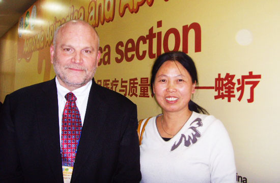 本人刚参加完在上海浦东举办的2013年全国蜂搏会。期间,本人向福建蜂学学院院长缪晓青和其他蜂疗专家汇报了近七年来用蜂毒及蜂产品抑乙肝病毒、带状疱症病毒、及带状疱症后遗神经疼、腮腺炎病毒的可喜成绩,以及由我蜂疗中心独创的“蜂药蜡灸热敷祛痛法”对颈、腰、腿疼痛的神奇疗效,获得业内人士赞誉,并获邀参加七月蜂疗专题论坛。