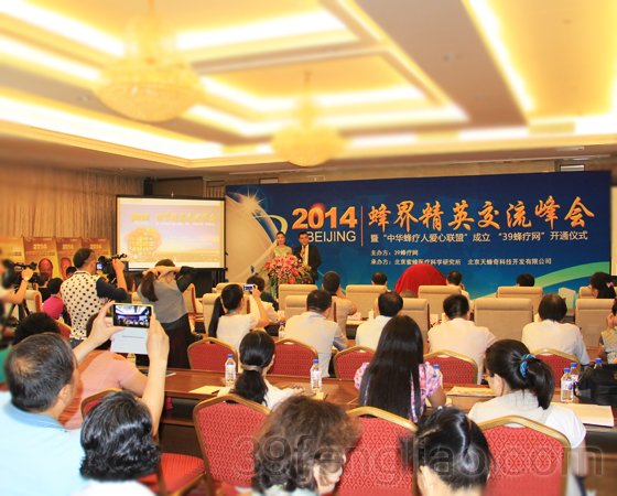 2014年7月6日,由39蜂疗网主办,北京蜜蜂医疗科学研究所、北京天蜂奇科技开发有限公司承办的2014蜂疗界精英峰会在京隆重召开。在北京全国人大会议中心举行。有来自全国各地的蜂疗专家、学者、蜂疗人及企业家代表共计百余人。原国家中医药管理局国际合作司张浩处长,中国公益事业促进会张永君会长,北京蜜蜂医疗科学研究所王孟林所长,广州中医药大学博士生导师李万瑶教授,我国著名的新闻记者、知名书画家王迈先生,《中国蜂业》杂志社主编李海燕博士,中国“五一”劳动奖章获得者、北京雷锋的士车队队长王凤进女士及荣获“2013年度中国公益人物”称号的“蜂疗抗癌孝子”曾伟先生也带着父亲等嘉宾应邀出席。