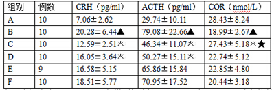 IL-1、IL-6 和 TNF-α等细胞因子的生物效应是通过网络化工作而实现的,它们可在 HPA 轴的各个水平调节其产物的分泌。本实验结果显示如表 1。