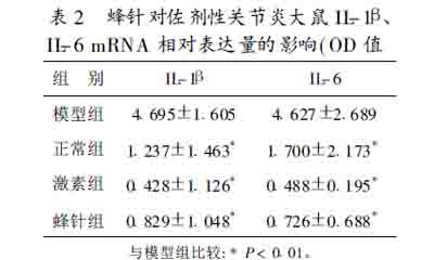 表2蜂针对佐剂性关节炎大鼠IL-1B、IL-6mRNA相对表达量的影响
