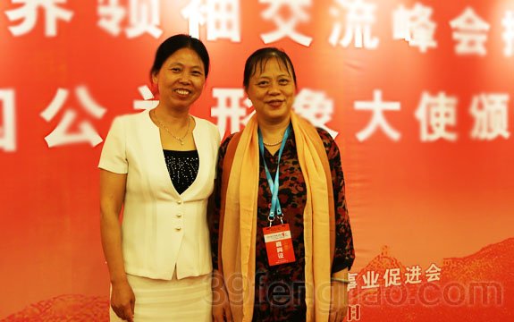 图:2014蜂界精英交流峰会上陆九妹与李万瑶教授合影