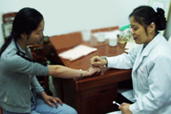李万瑶教授向浙江江山市民现场展示蜂针疗法