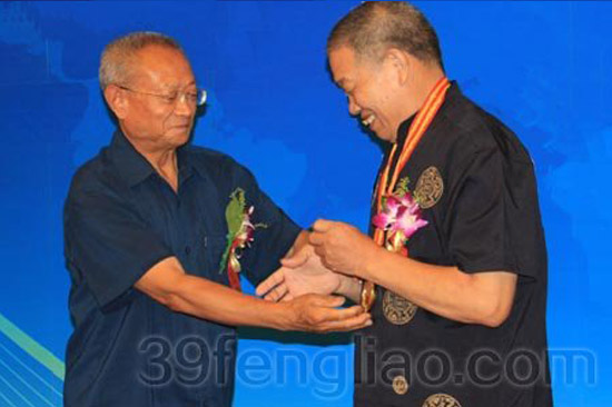 王孟林院长与曾父颁发“2013年度中国‘蜂疗’抗癌明星”奖章