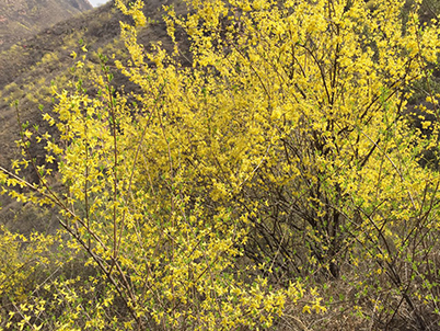 这里蜜粉资源丰富,春有油菜、洋槐、连翘花等,夏有乌桕、黄荆条,秋有荞麦,野霍香等蜜源等。现在正值连翘花开花之季,漫山尽是黄金甲,这里还成为了摄影师采景的地方。