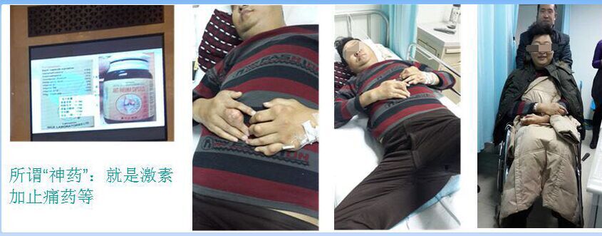 2014年11月的一天,伴随着,救护车急救的声音,唐先生因消化道大出血,被送至石家庄市第一医院,详询病史,得知,唐先生今年43岁,但已有20余年的痛风史,常年服用一种被称为治疗痛风的“神药”,来维持病情,起初只要痛风发作,吃上这“神药”两个小时基本就可以缓解疼痛,但随着时间的流逝“神药”起效的时间越来越慢。而且逐渐出现转氨酶升高,消化道出血,双肘、腕、膝、踝关节不同程度痛风石。住进我院消化内科,曾被两次下达病危通知书,经过消化内科大夫几天不分昼夜的抢救、治疗,最后终于将生命垂于一线的唐先生拉了回来。由于消化道大出血,只能强忍着剧痛,与病魔抗争,病情反弹,剧痛无比,来到我科治疗,找到我们科安香珍主任时,唐先生向握着生命的最后一根稻草,说:“我的病'无药可救'了,现在所有的希望就拜托您了。”经查阅病历,唐先生尿酸高达639umol/L,安香珍主任应用蜂针3+2疗法,经过半个月的治疗,夜间疼痛减轻,尿酸降到549。又经过第二个疗程的治疗,尿酸降至425,各关节疼痛明显缓解。最后唐先生拿自己的“神药”经鉴定是激素加止疼药,唐先生后悔莫及,不该盲目相信什么所谓的神药,差点把自己的小命搭进去,不过万幸的是遇到了安主任,让我有了活下去的信心。特别提醒: