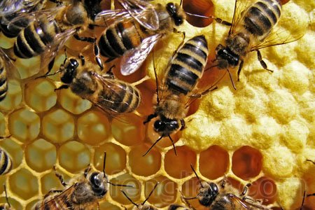 当外界天气好、蜜源好、进蜜快速、蜜汁稀薄时,内勤蜂一面不停地进行酿蜜工作,一面加速进行贮存,它们会把蜜汁分成小滴,分别挂在许多巢房顶上,目的是增加表面积,以加快水分蒸发。就这样,采集蜂穿梭似地来回奔忙,酿蜜蜂昼夜不息地加工酿制,扇风大军强有力地协同配合,构成一幅生机勃勃的采花酿蜜场面,实在令人赞叹!