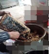 凌晨4点钟,我跟主任还有养蜂员去打蜜,走在崎岖的山路上沐浴着山中的雨露老远就听到了蜜蜂的嗡嗡声。今天天气不错,蜜蜂忙碌的开始了一天的工作。我们得在早上八点前,将蜂蜜打好。否则蜜蜂新采的“花蜜”就影响“成熟蜜”的质量了。还好7:40我们打完蜂蜜,只打了80瓶,一瓶不剩的天黑前送到了医院食堂。