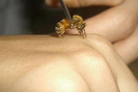 蜂毒是一种透明液体,具有特殊的芳香气味,味苦,呈酸性反应,在常温下极易挥发。蜂毒的主要成分为蜂毒多肽,占干蜂毒的75%左右。包括蜂毒肽、心脏肽、组胺肽等,其他非肽类有组织胺、儿茶酚胺类,以及55种以上的酶类。在严格密封的条件下,即使在常温下,蜂毒的活性也能保持数年不变。目前,蜂毒在临床上主要用于治疗颈椎病、肩周炎、滑膜炎通风等关节炎症。事实证明,养蜂人很少有得关节炎的,这就要归功于蜜蜂的螫针在刺伤人体时所释放的蜂毒。