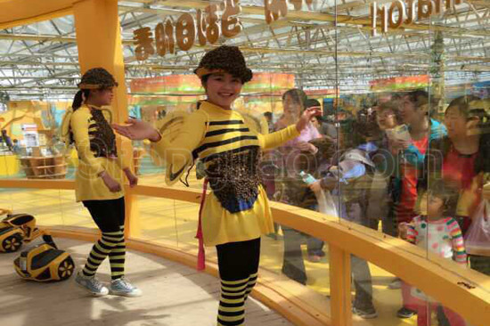 为期51天的第二届北京农业嘉年华以“自然·融合·参与·共享”为主题,由北京昌平区人民政府主办,是以现代农业为主题元素,融合农业生产、生态、休闲、教育、示范等多种功能的都市农业盛会,有近300家国内外农业企业参与。据介绍,为了充分照顾各个年龄段游客的需求,本届嘉年华不仅设置了体现趣味性、知识性、科技性的全国休闲农业创意精品展、农业艺术体验区、草莓科技博览区,还特别规划了主题狂欢乐园、拓展休闲乐园和农事体验乐园,充分满足游客的互动体验需求。而在蜂彩世界馆,小朋友们不仅可以看到蜜蜂采蜜的场景,还可以看到蜜蜂在透明的蜂箱里忙忙碌碌。
