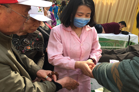 平时人们见到蜜蜂唯恐避之不及,但农业嘉年华里,游客们却抢着与蜜蜂亲密接触,因为工作人员告诉游客蜜蜂也能治病。