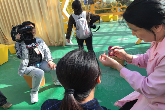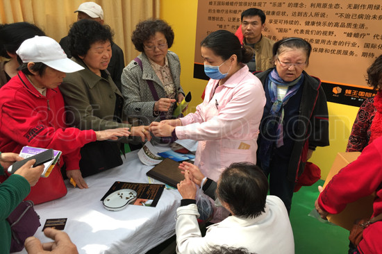 平时人们见到蜜蜂唯恐避之不及,但农业嘉年华里,游客们却抢着与蜜蜂亲密接触,因为工作人员告诉游客蜜蜂也能治病。